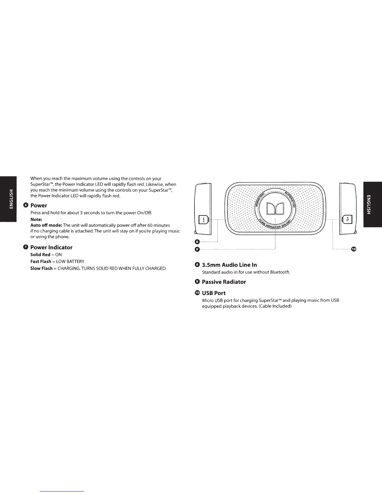 Monster SuperStar - Power Control; Power Indicator; Audio Input Ports; Passive Radiator