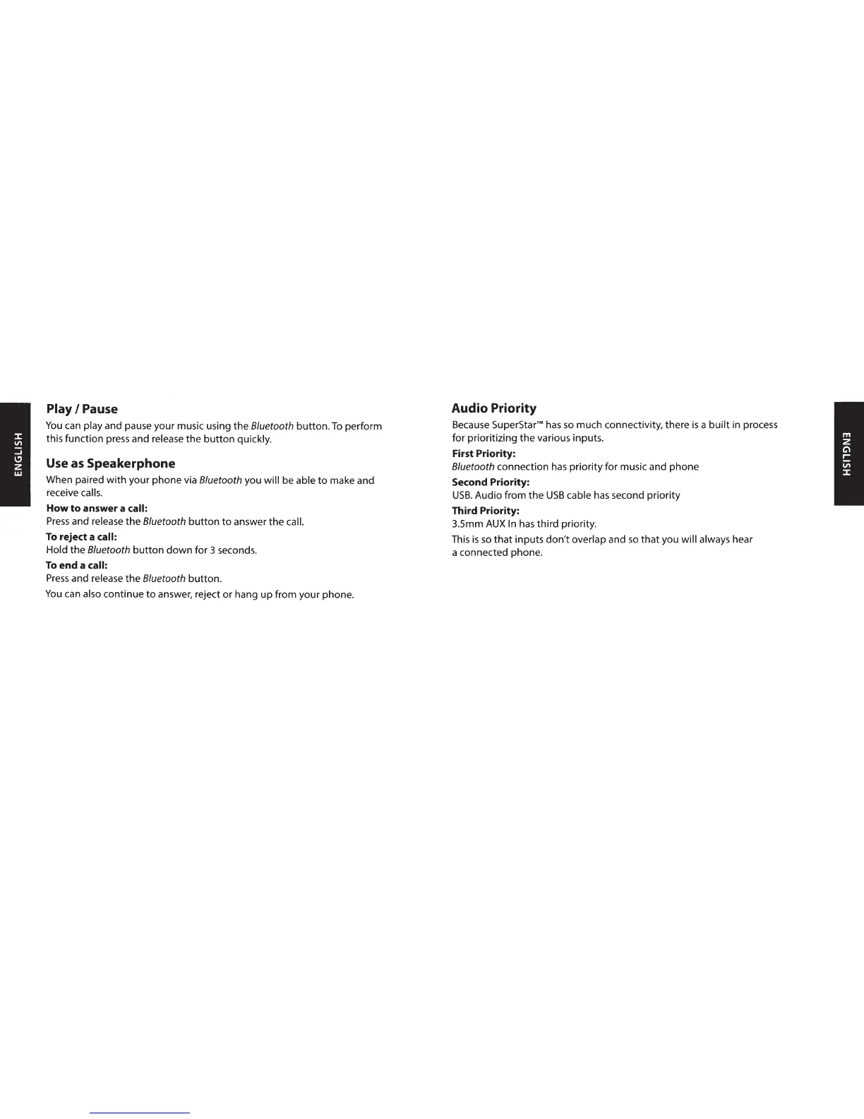 Monster SuperStar - Music Playback Controls; Speakerphone Functionality; Audio Input Priority