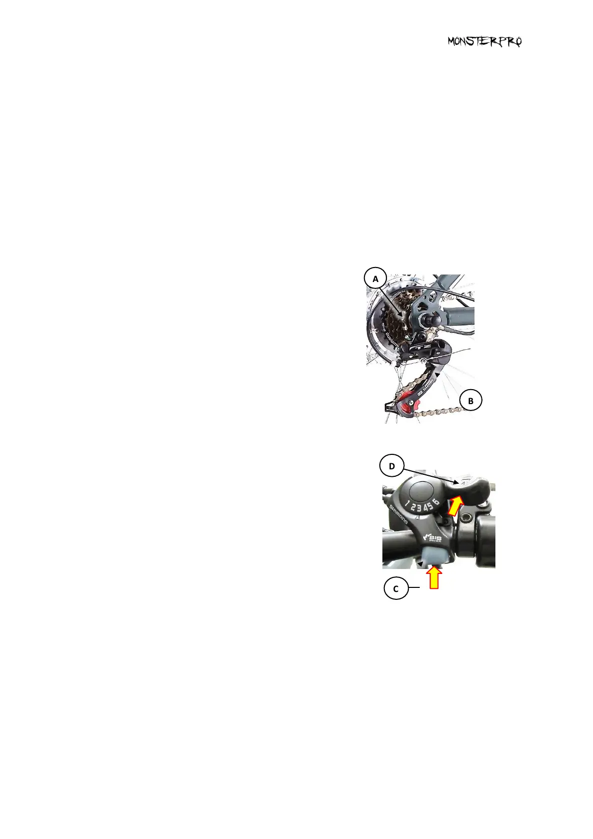 activate derailleur), and a lever (D) for changing down