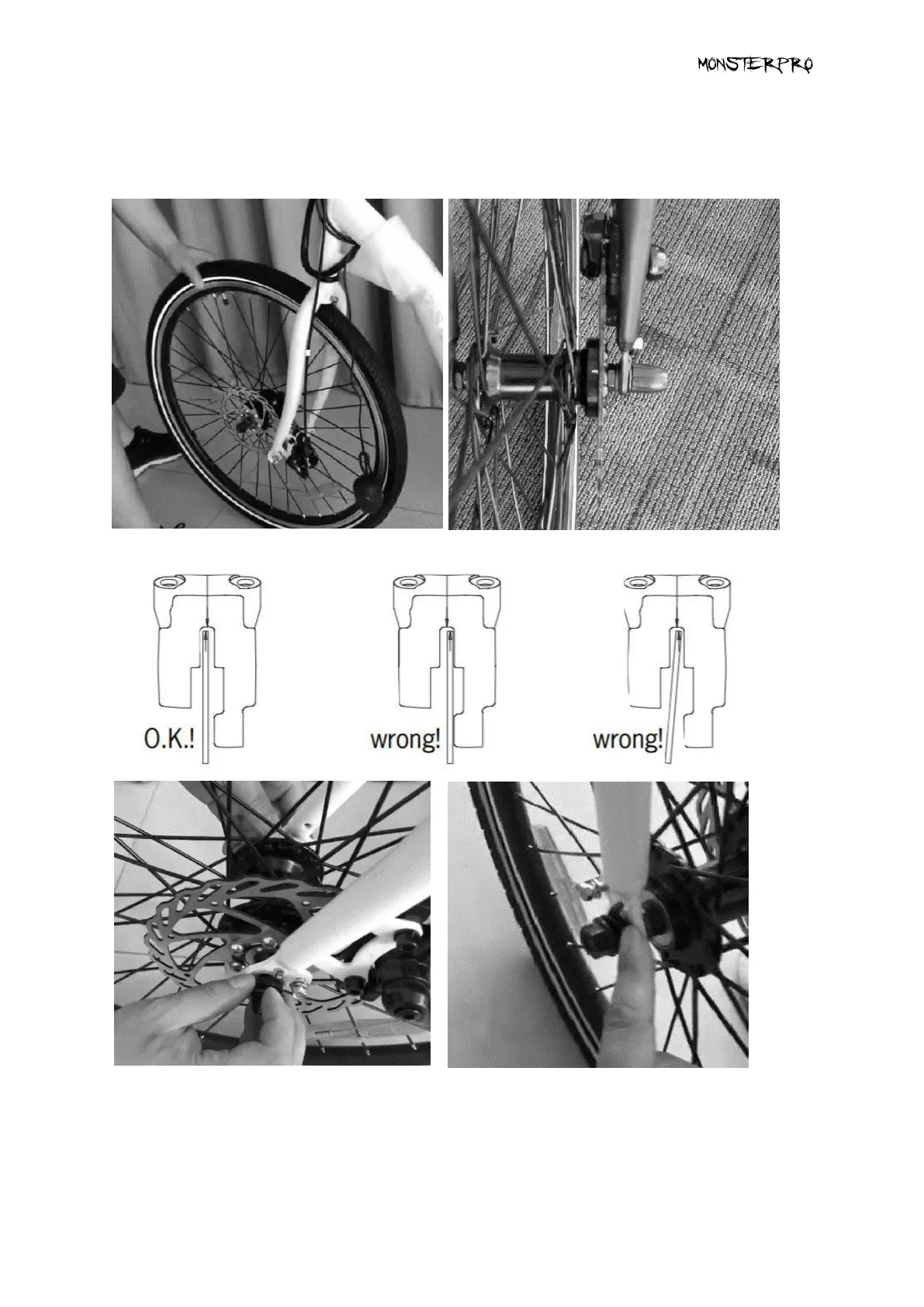the rotor between the brake pads and fixing the wheel in the dropouts.