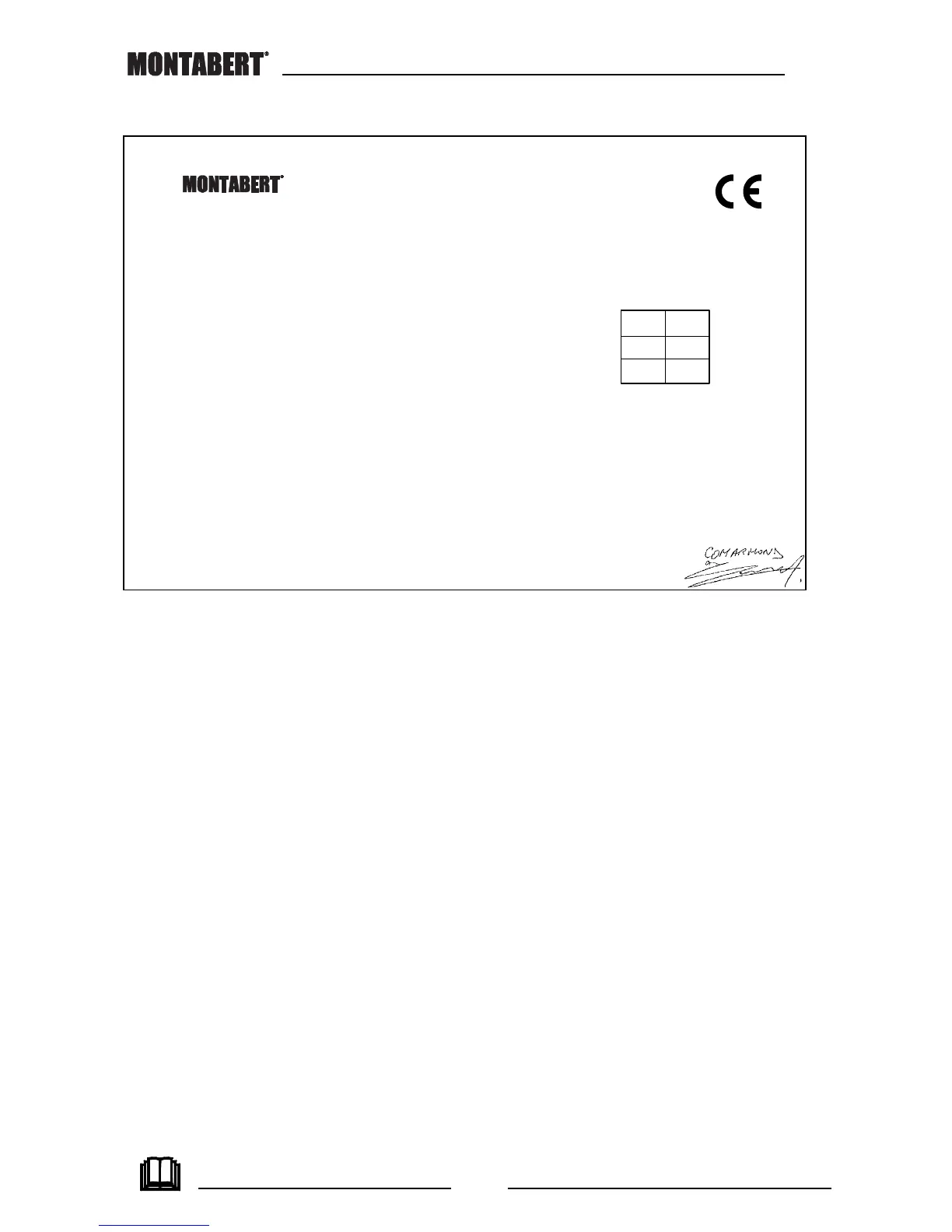 This CE certification applies exclusively to the equipment and does not include any hydraulic, electrical or