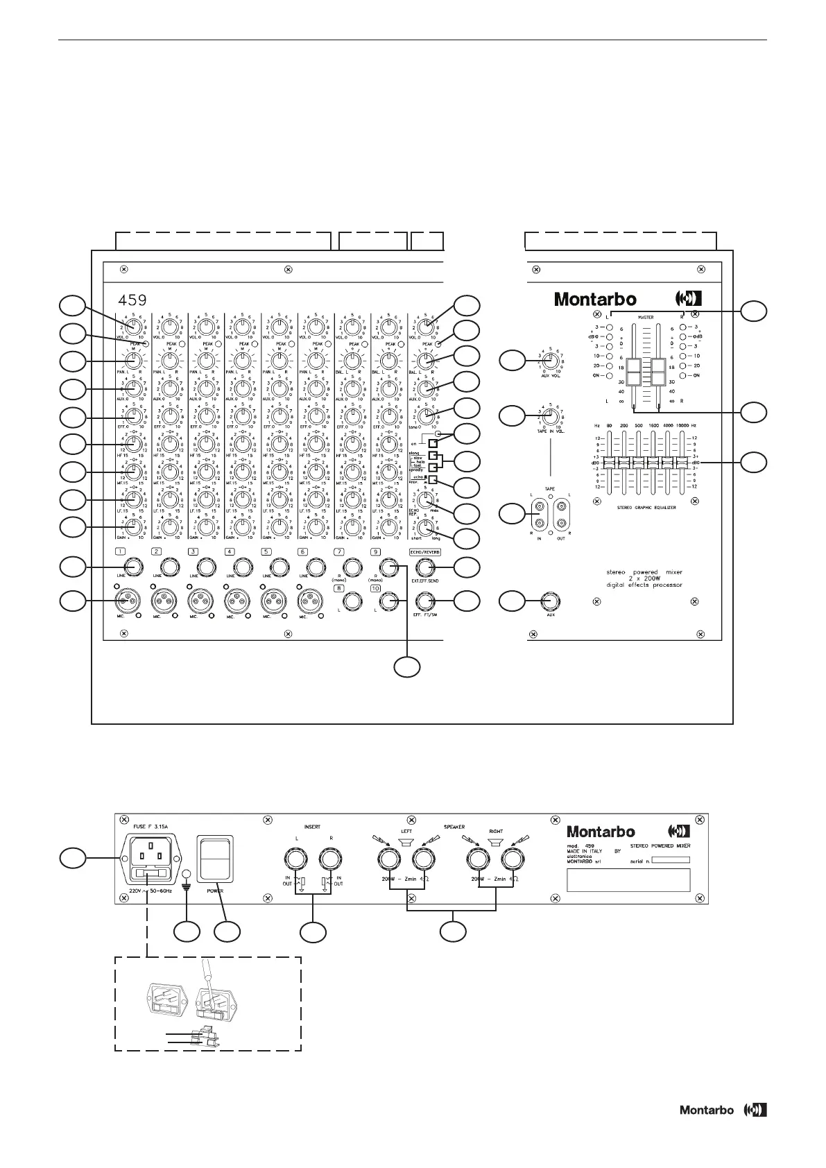 Montarbo 459S - Control Panel Layout; Front Panel Controls; Rear Panel Connections