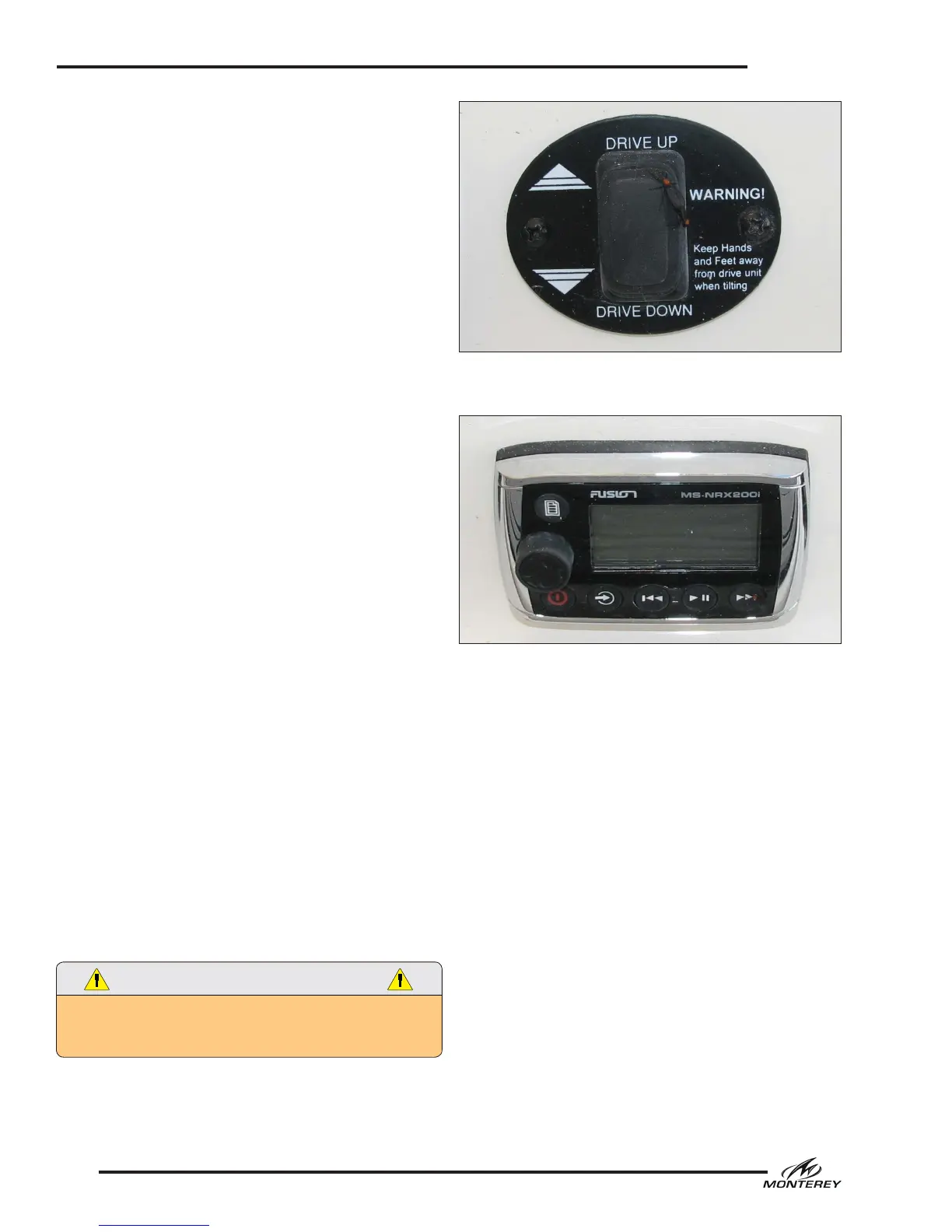 the transom door or aft seat. Controls the stereo.