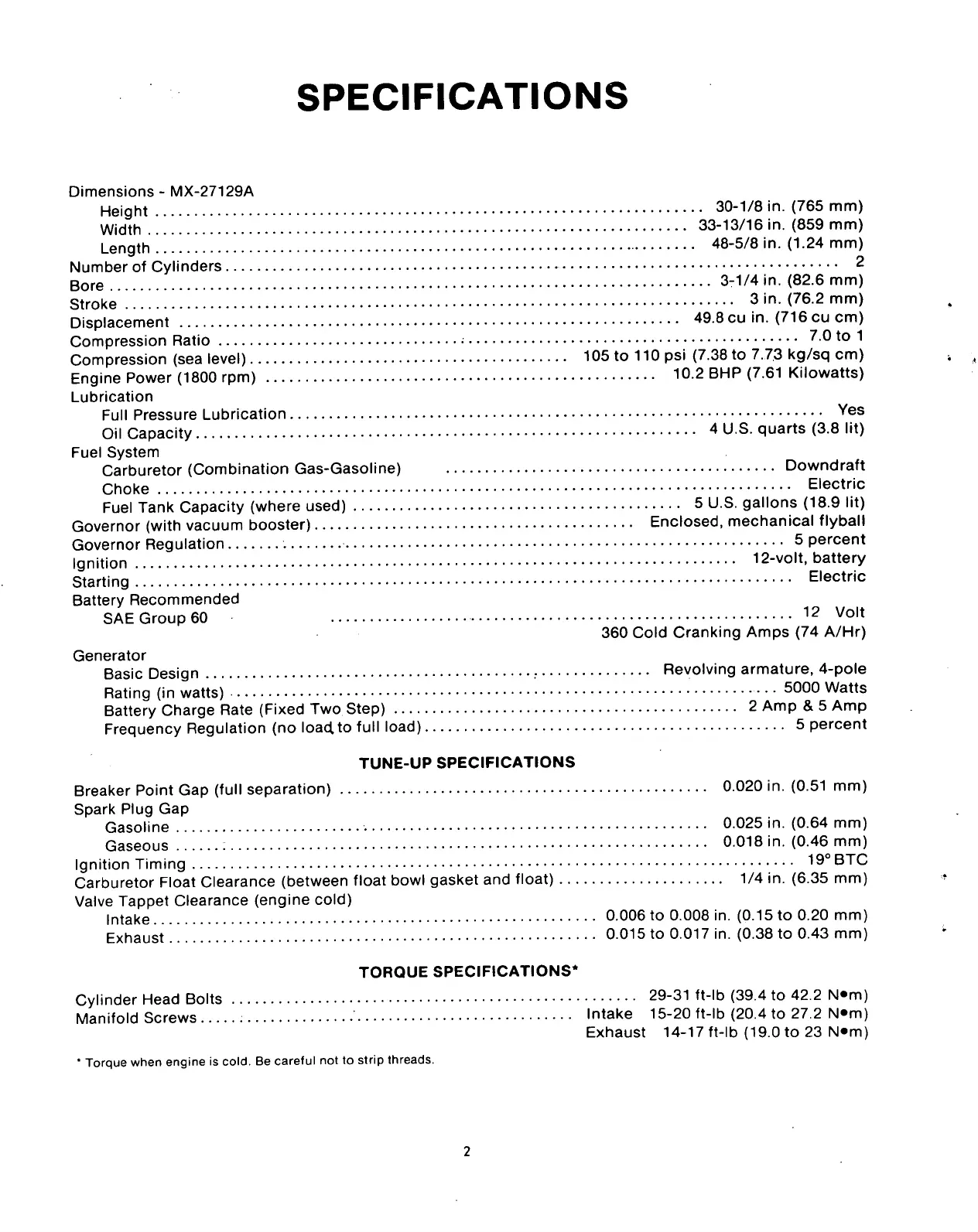 Fuel Tank Capacity (where used) 5 U.S. gallons (18.9 lit)