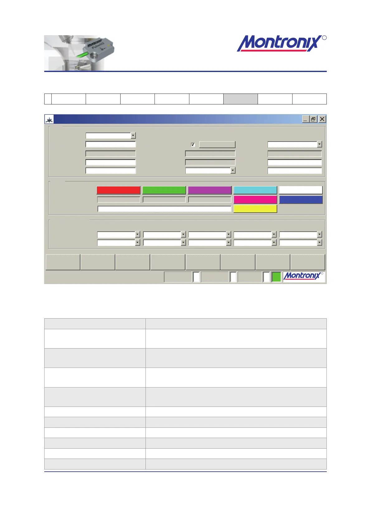 1 Reset alarms Teach Settings Save limits Event Log Cong Login Statistics
