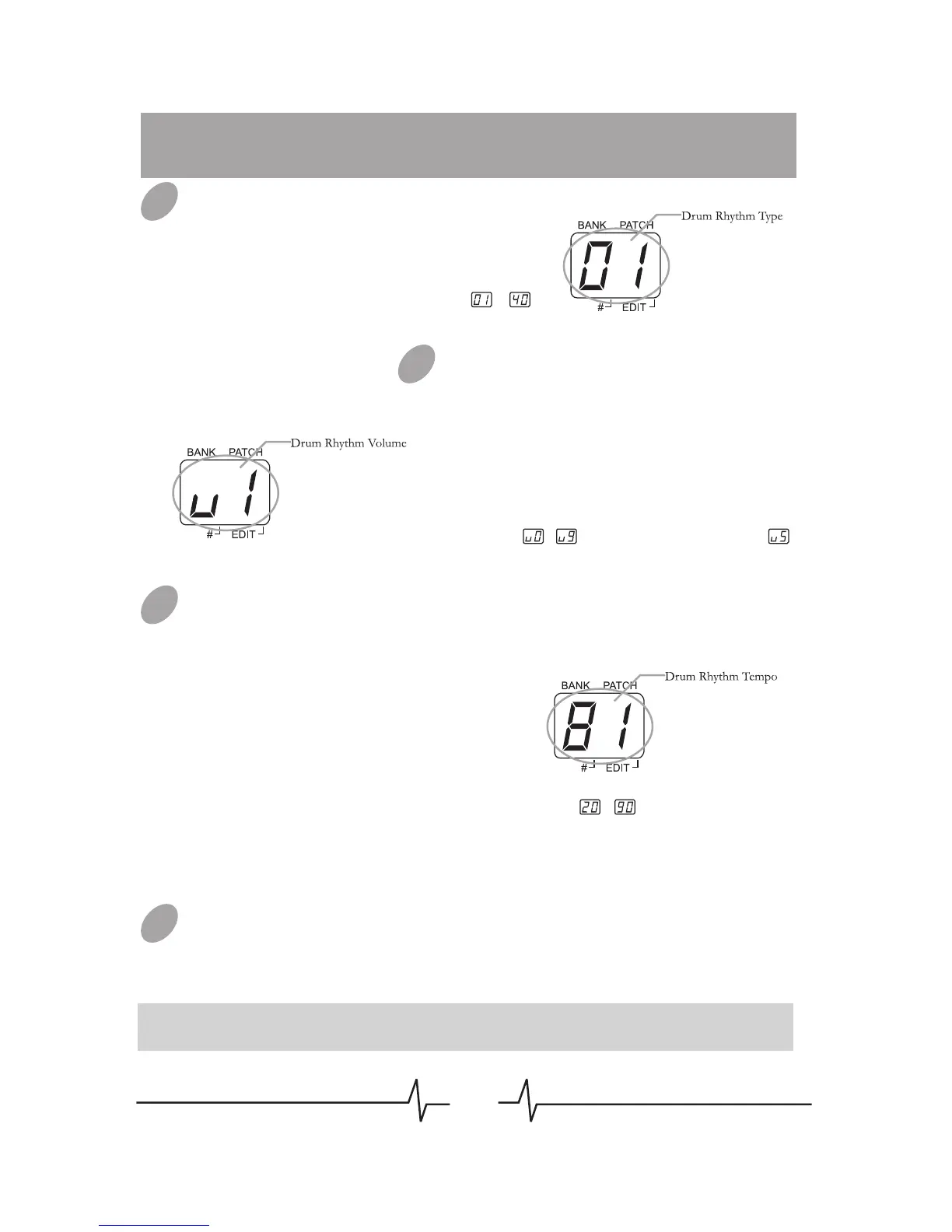mode), press [PATCH –] footswitch will start the drum rhythm. When