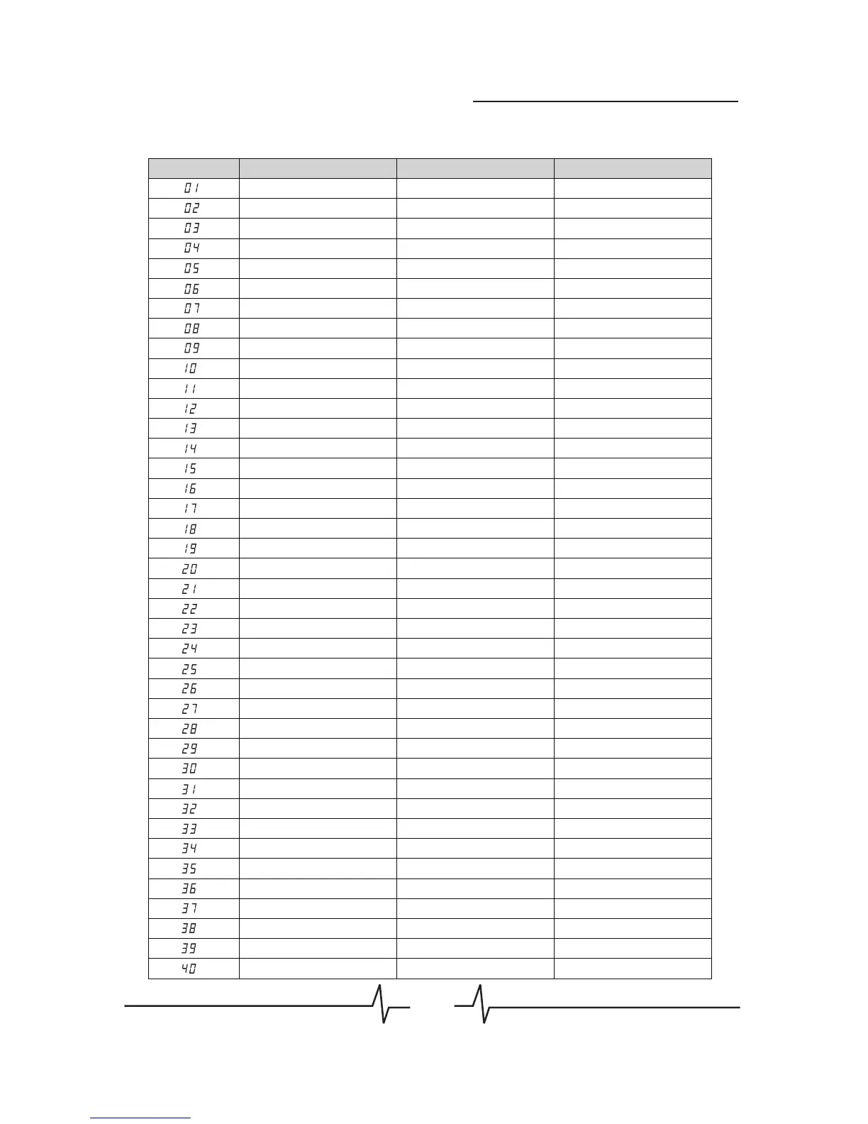 No. Type Time Signature Default Tempo