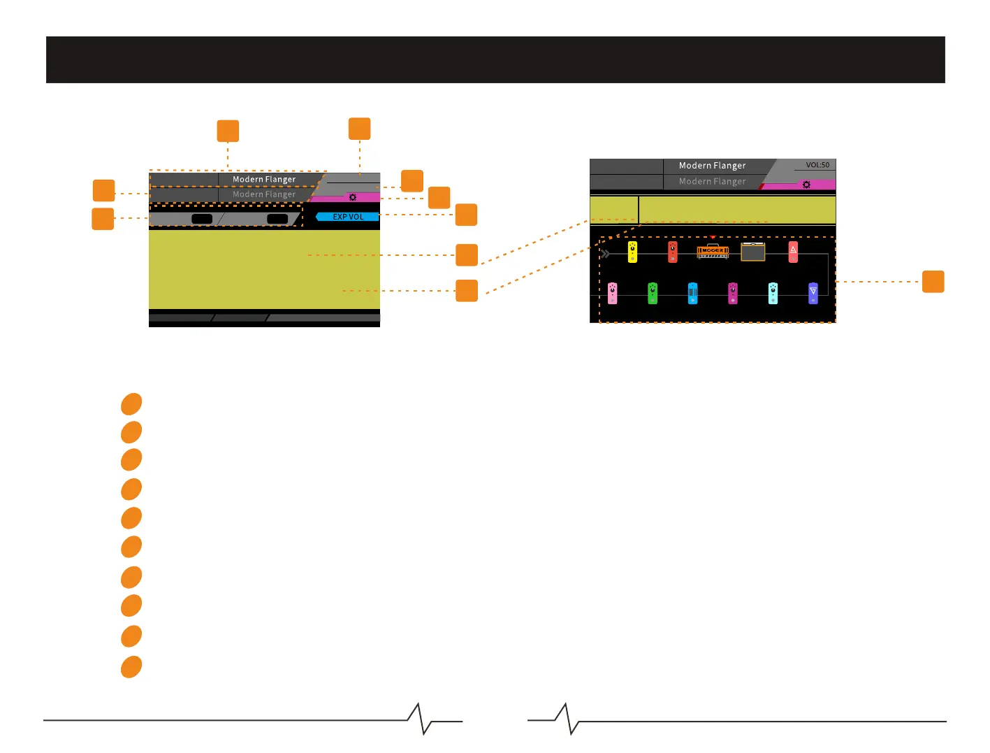 Mooer GE250 - Home Display Overview; Expression Pedal and Cab Sim Displays; Preset and Volume Information; DSP Load and Effects Chain View
