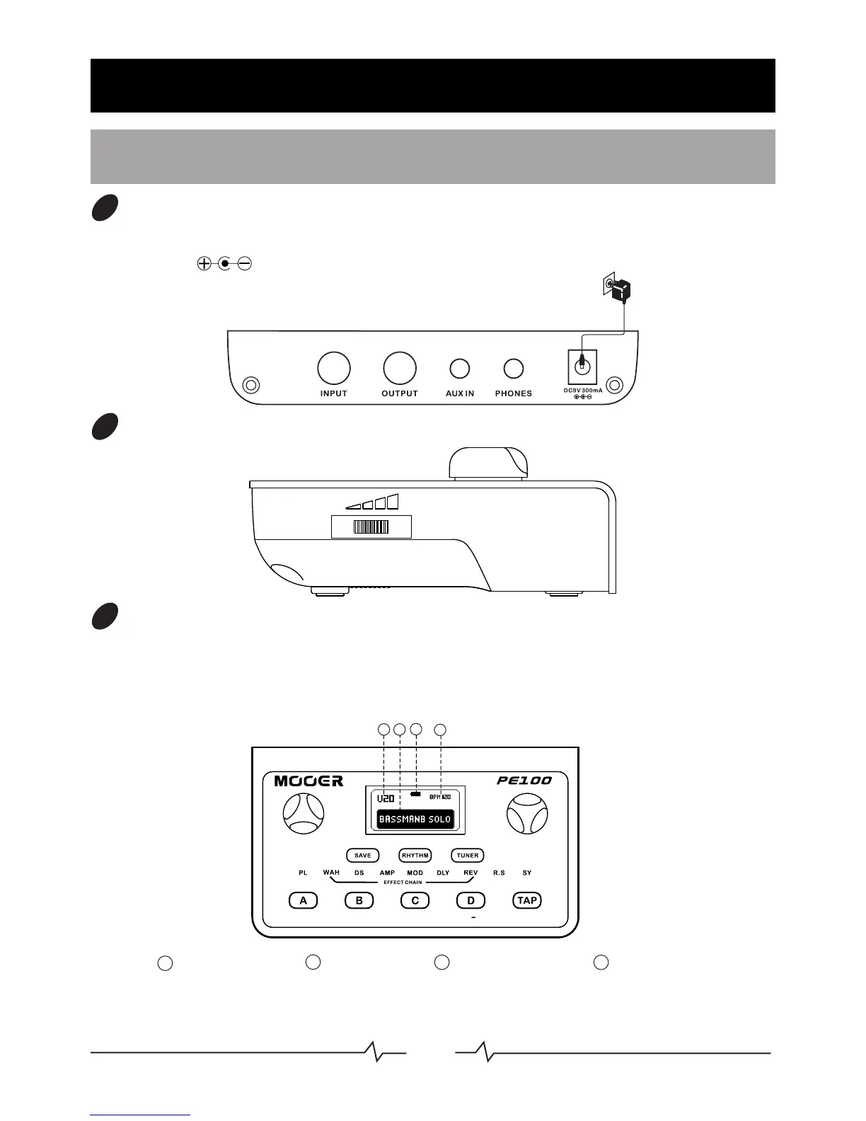 (9V, 300mA, ), Plugging a Jack cable into the input will activate the power
