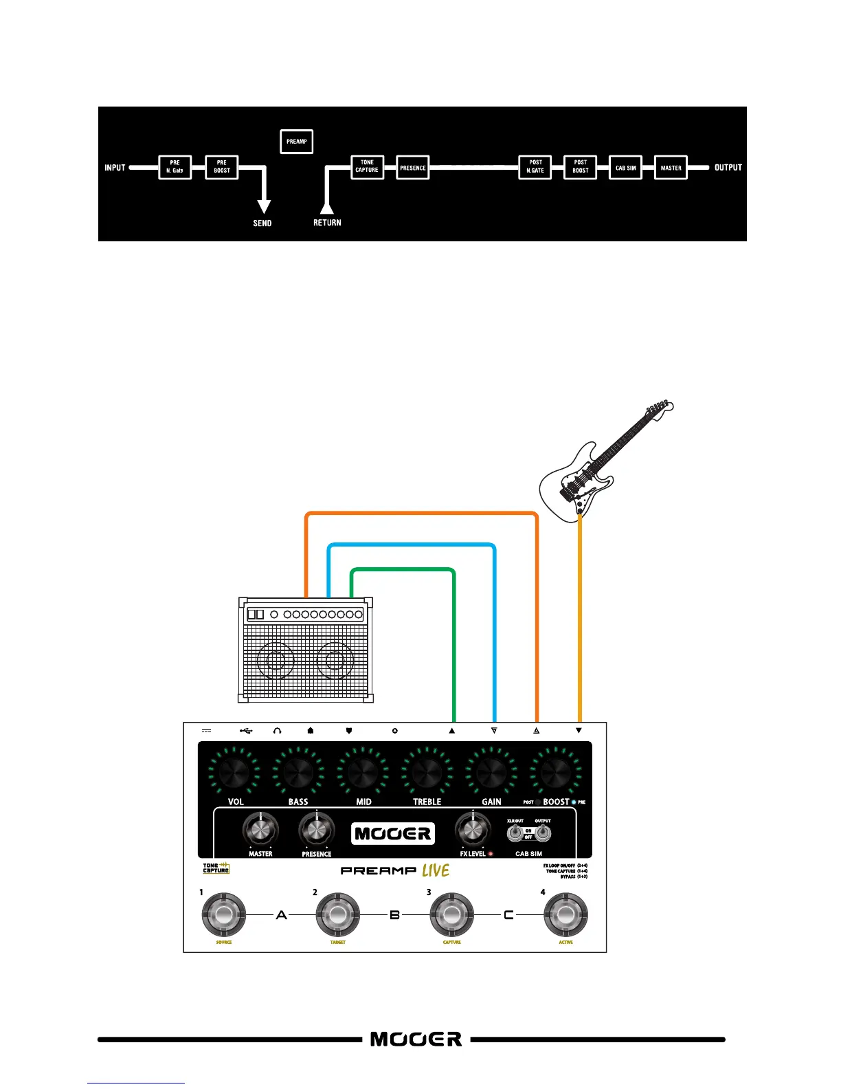 MODE B is a special FX LOOP that will bypass the digital preamp section of PREAMP LIVE and