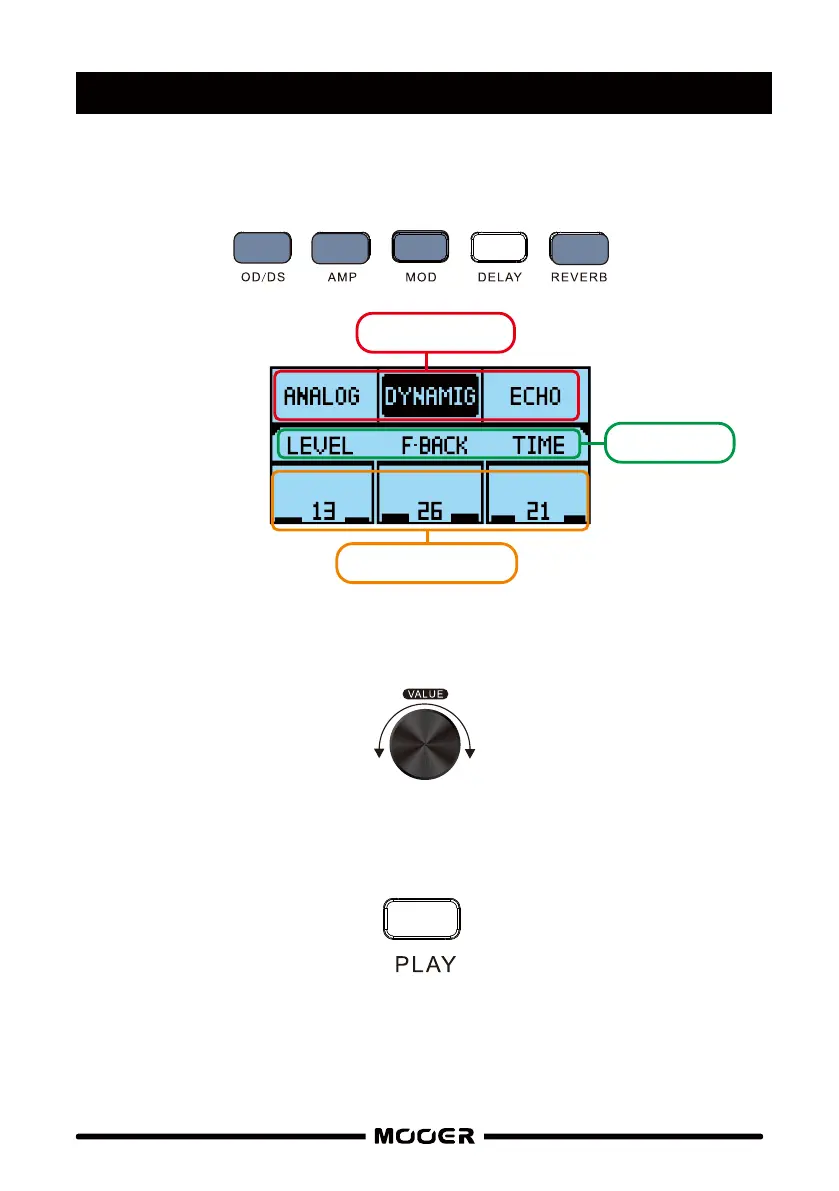 Press the PLAY button when you are finished editing to return to the PLAY screen. Don’t forget