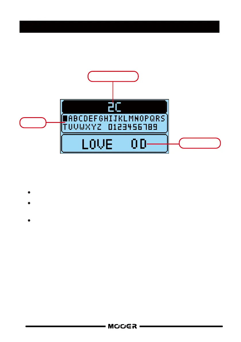 Enter your new preset name using the keypad. Press VA LUE to select a character, rotate