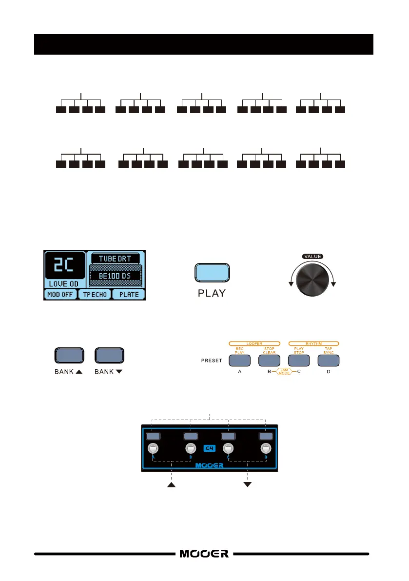 1. Rotate the VALUE control when on the PLAY S CREEN to scroll through presets.