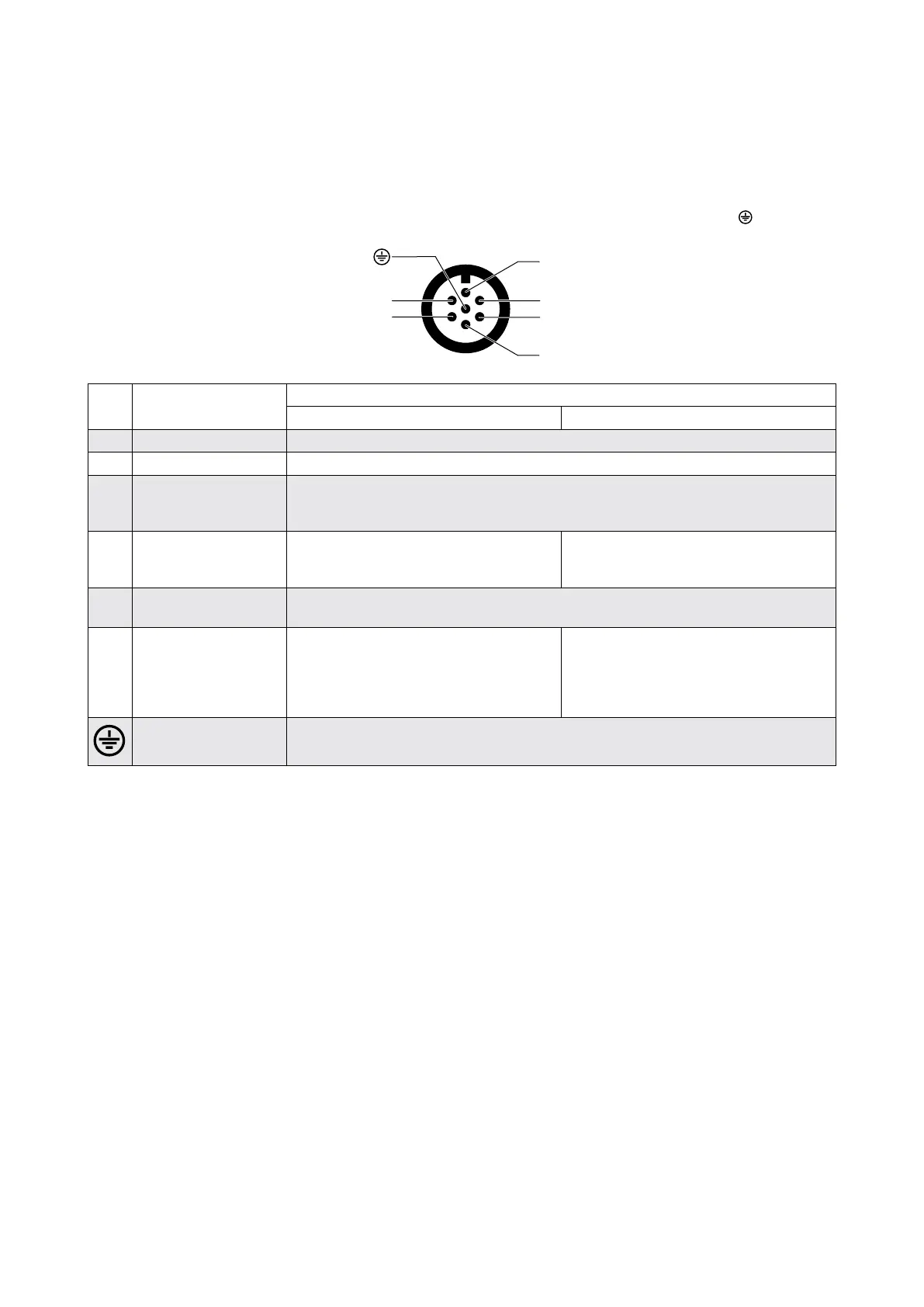 Pin Assignment for Valves with 6-pole + PE Connector, Pin Contacts