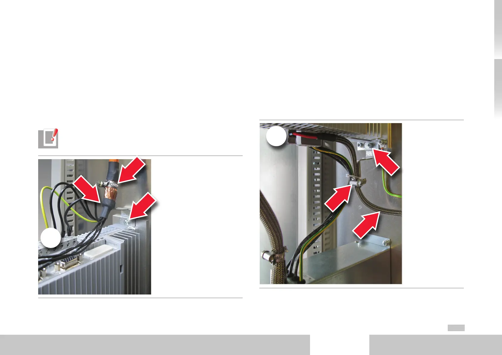 • Connect the motor cable shield across a wide area to the shield connection plate