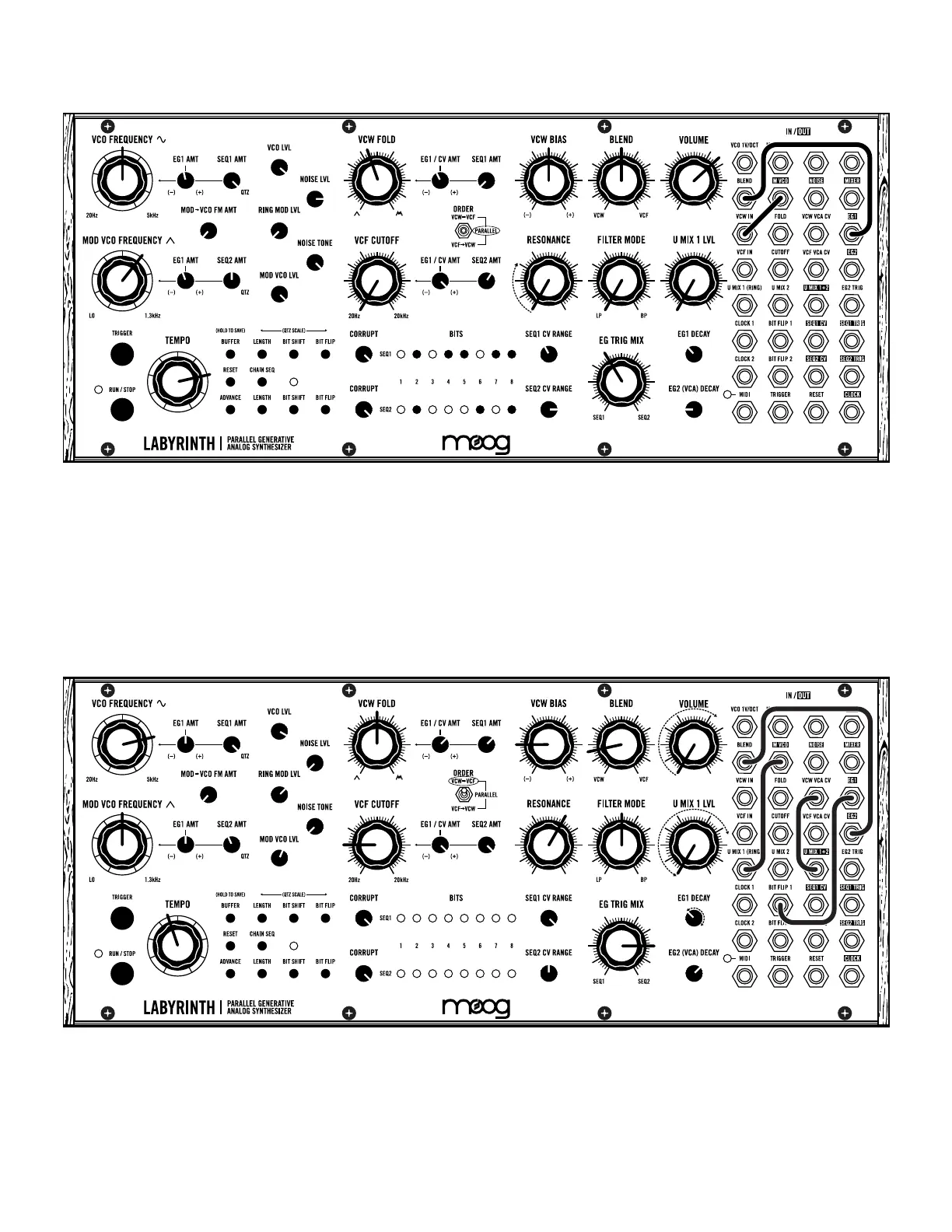 As sequence plays, slowly bring U MIX 1 LVL knob up for second timbre.