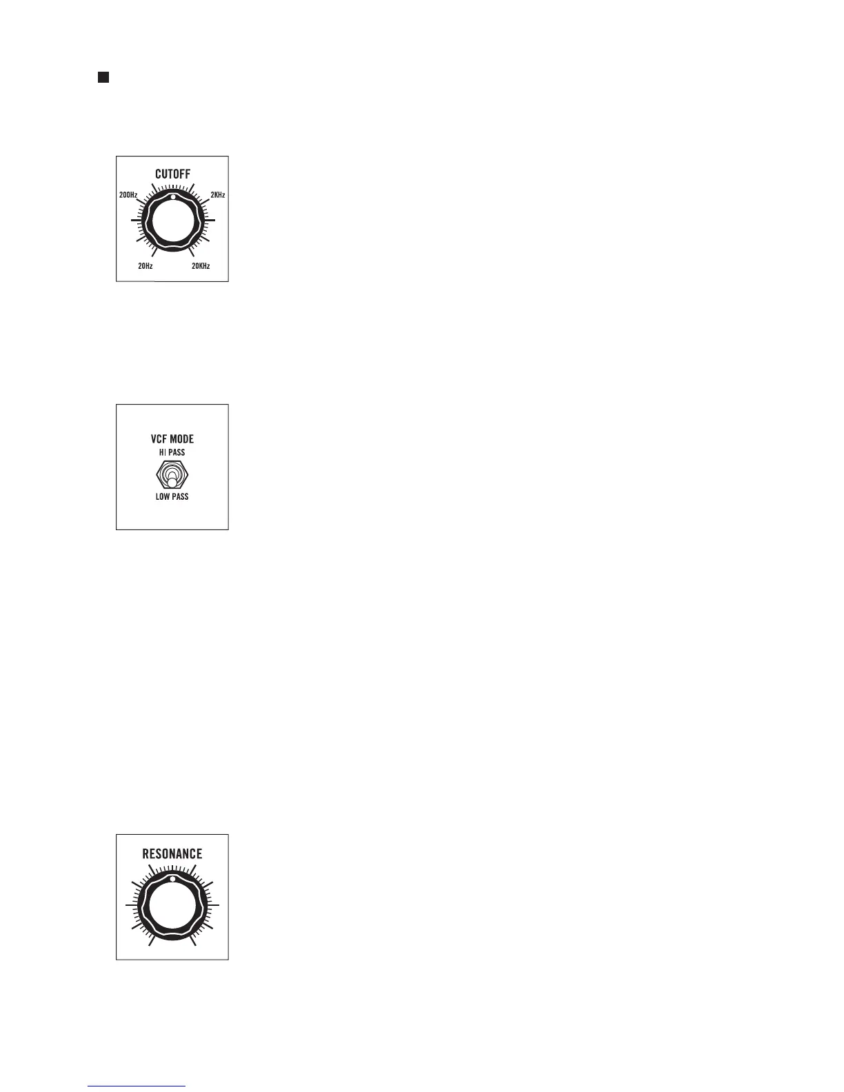 amplitude at the Cutoff frequency. Settings above 3 o’clock will cause the