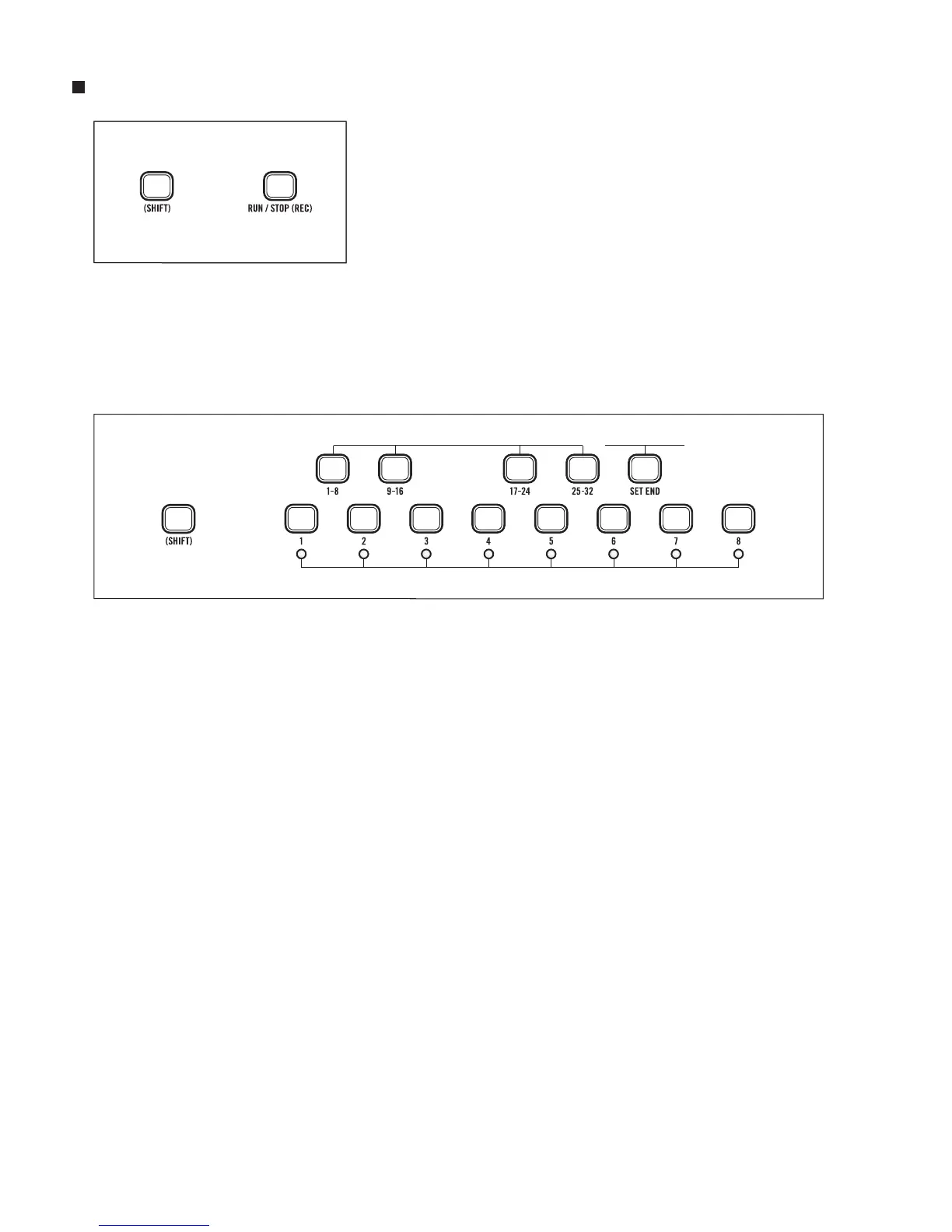 To change Pattern Pages, press (SHIFT) and one of the four Page Selector buttons: 1-8, 9-16,