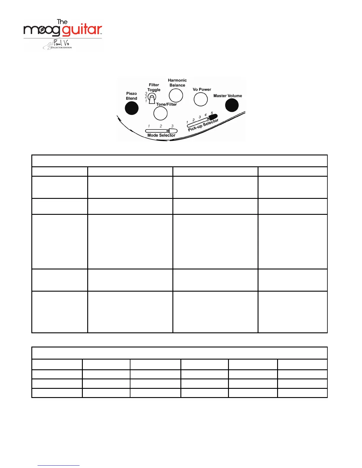 PICK-UP SELECTOR Piezo Bridge Out of Phase In Phase Neck