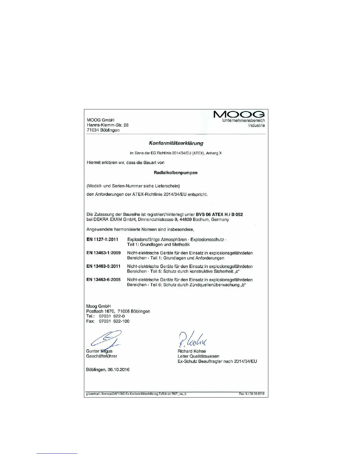 Moog GmbH Benutzerinformation RKP für explosionsgefährdete Bereiche (CA57626 Version 2, 02/2016) 5