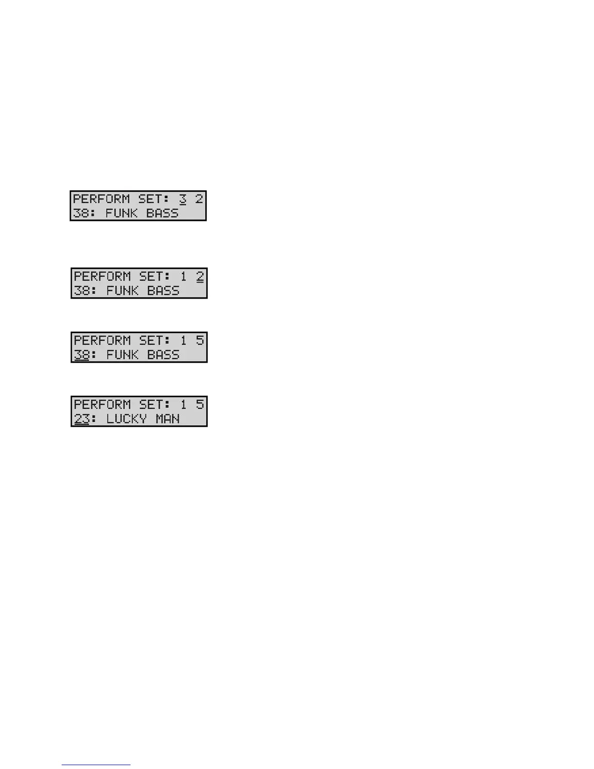 To edit a Performance Set, use the CURSOR key to select the Performance SET number (1-4), ENTRY