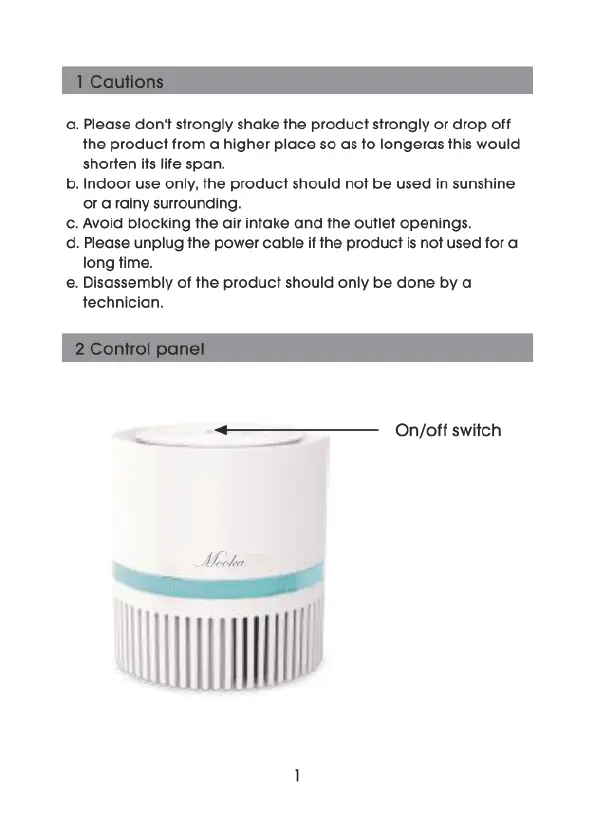 MOOKA EPI810 - Cautions; Control Panel