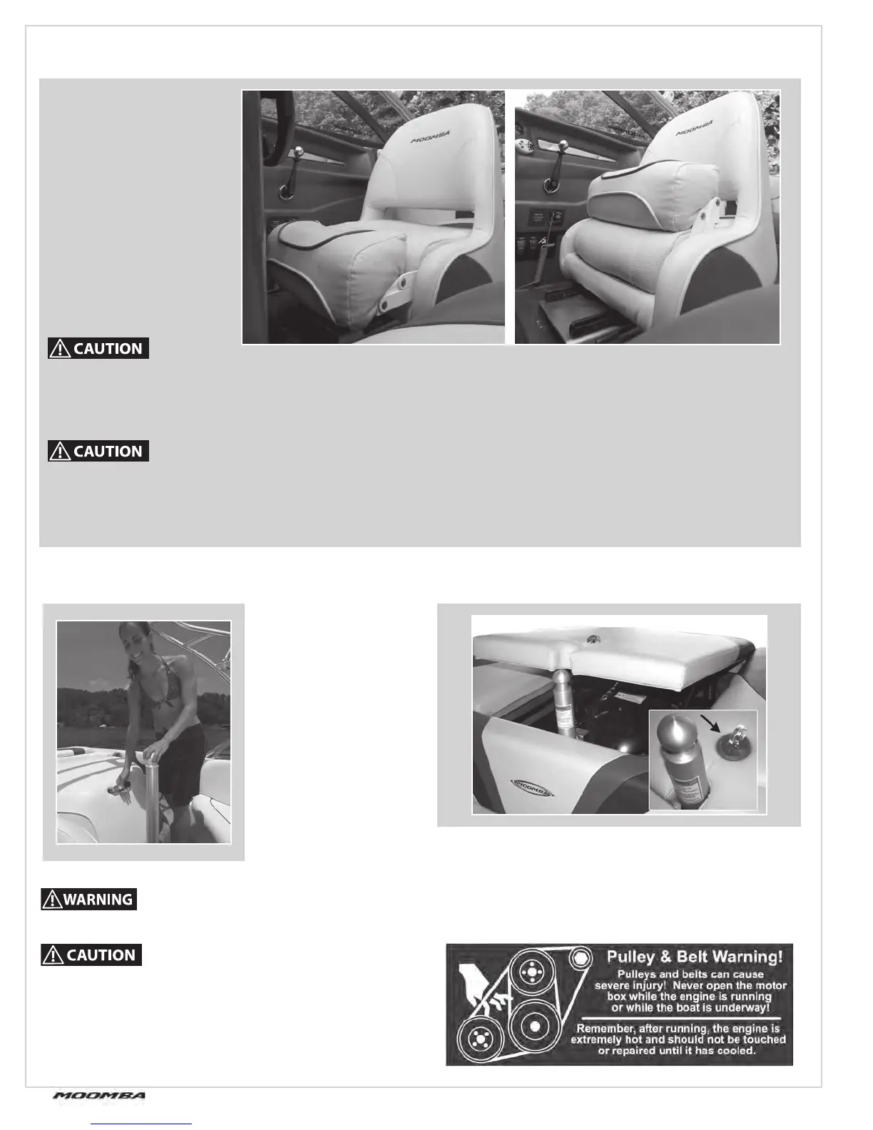 DO NOT attempt to adjust the driver’s seat while the boat is moving.