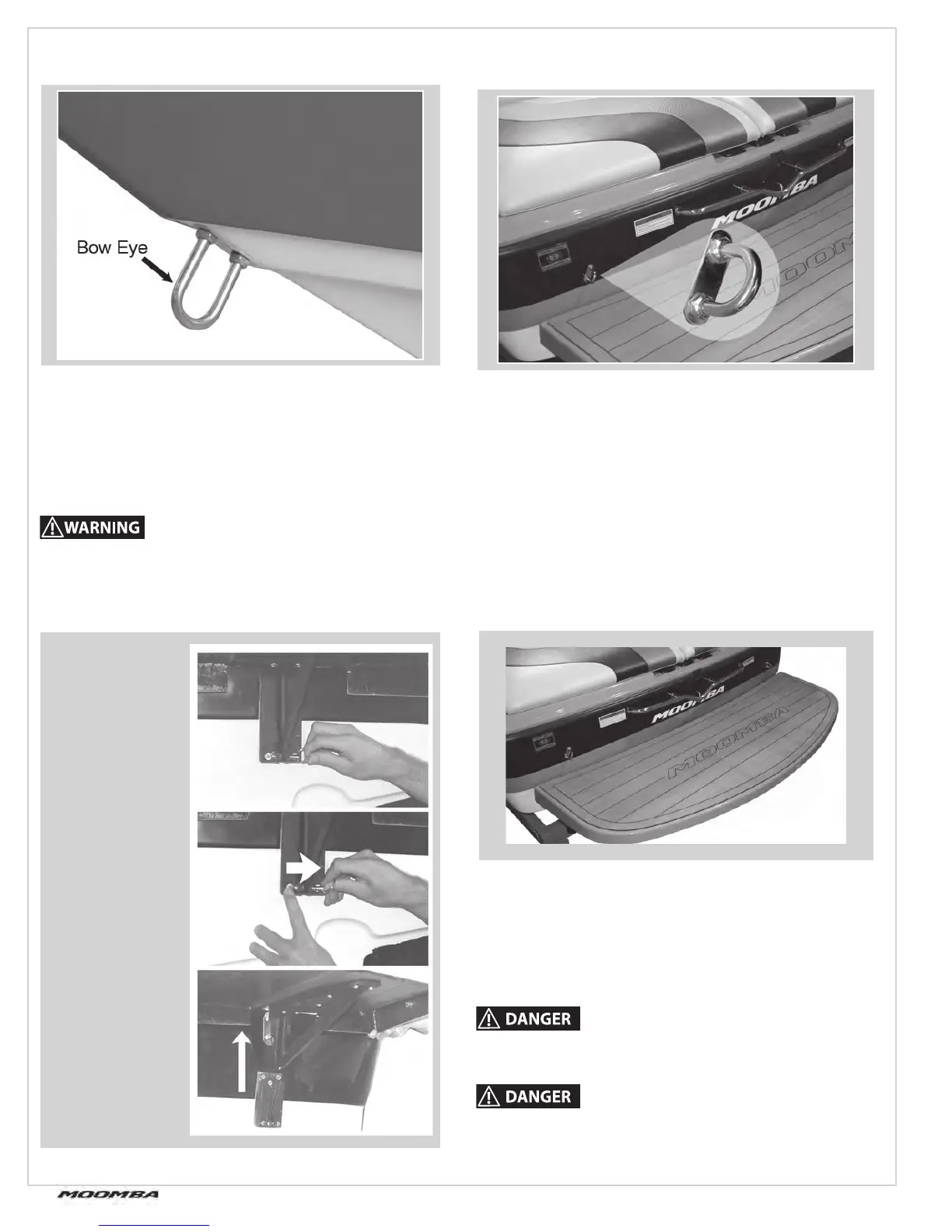 DO NOT use the bow eye ONLY to hoist the boat. You must