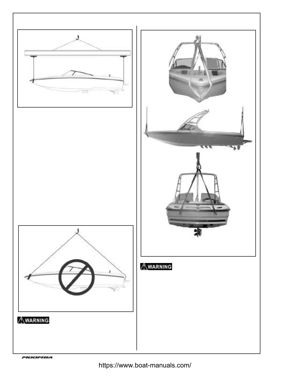- Hoist the boat using a horizontal lifting bar only.