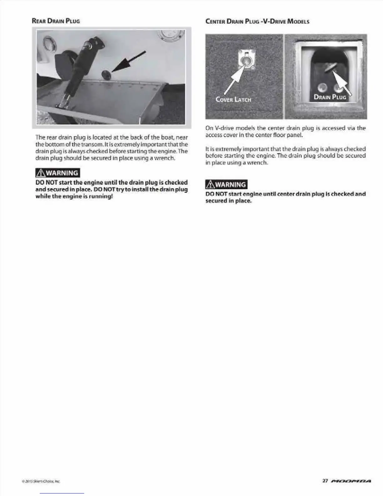 Moomba Outback V - Drain Plug Locations and Checks; Rear and Center Drain Plug Procedures