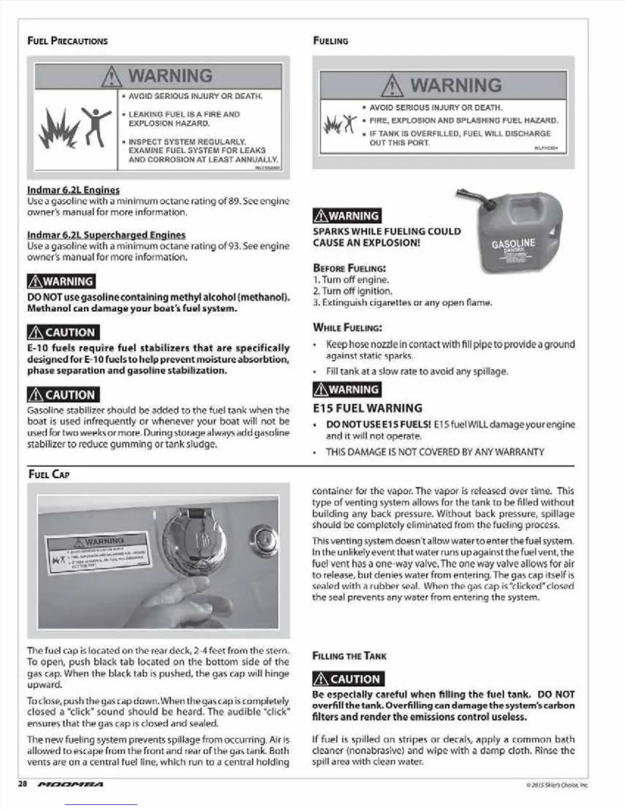 Moomba Outback V - Fuel System Safety and Handling; Fueling Precautions and Warnings