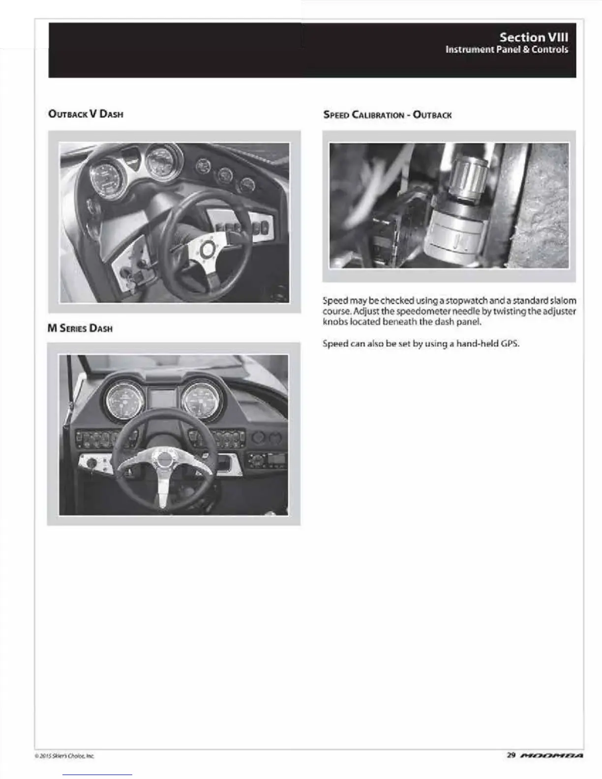 Moomba Outback V - Instrument Panel and Controls Overview; Speed Calibration Procedures