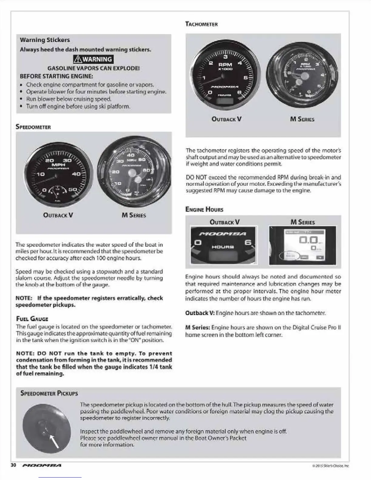 Moomba Outback V - Gauges and Indicators; Speedometer, Tachometer, and Fuel Gauge; Engine Hours Monitoring