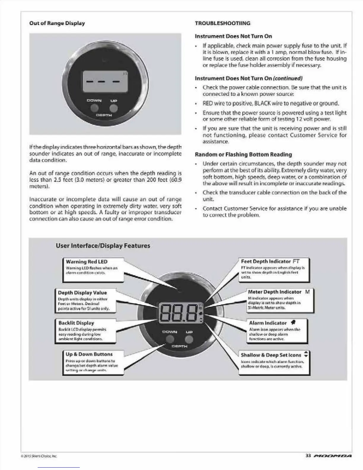 Moomba Outback V - Depth Sounder Troubleshooting; Interpreting Depth Sounder Displays