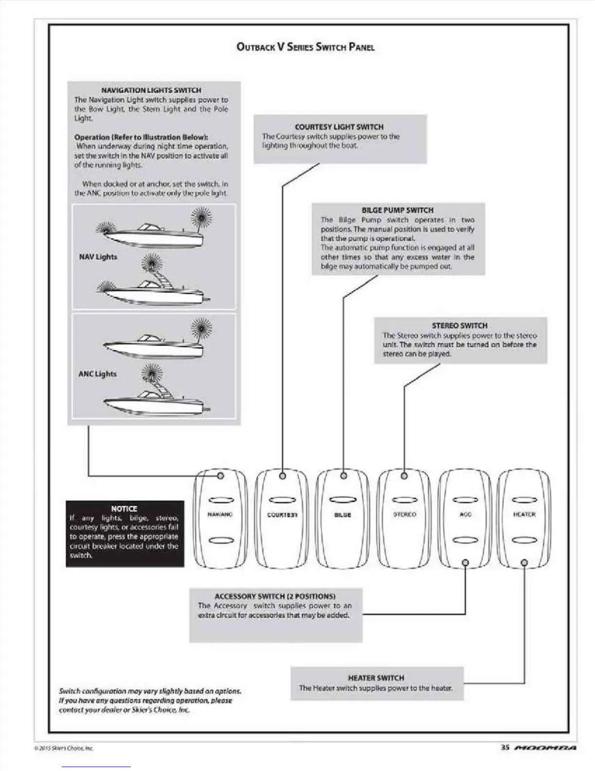 Moomba Outback V - Outback V Series Switch Panel Functions; Control Switch Descriptions