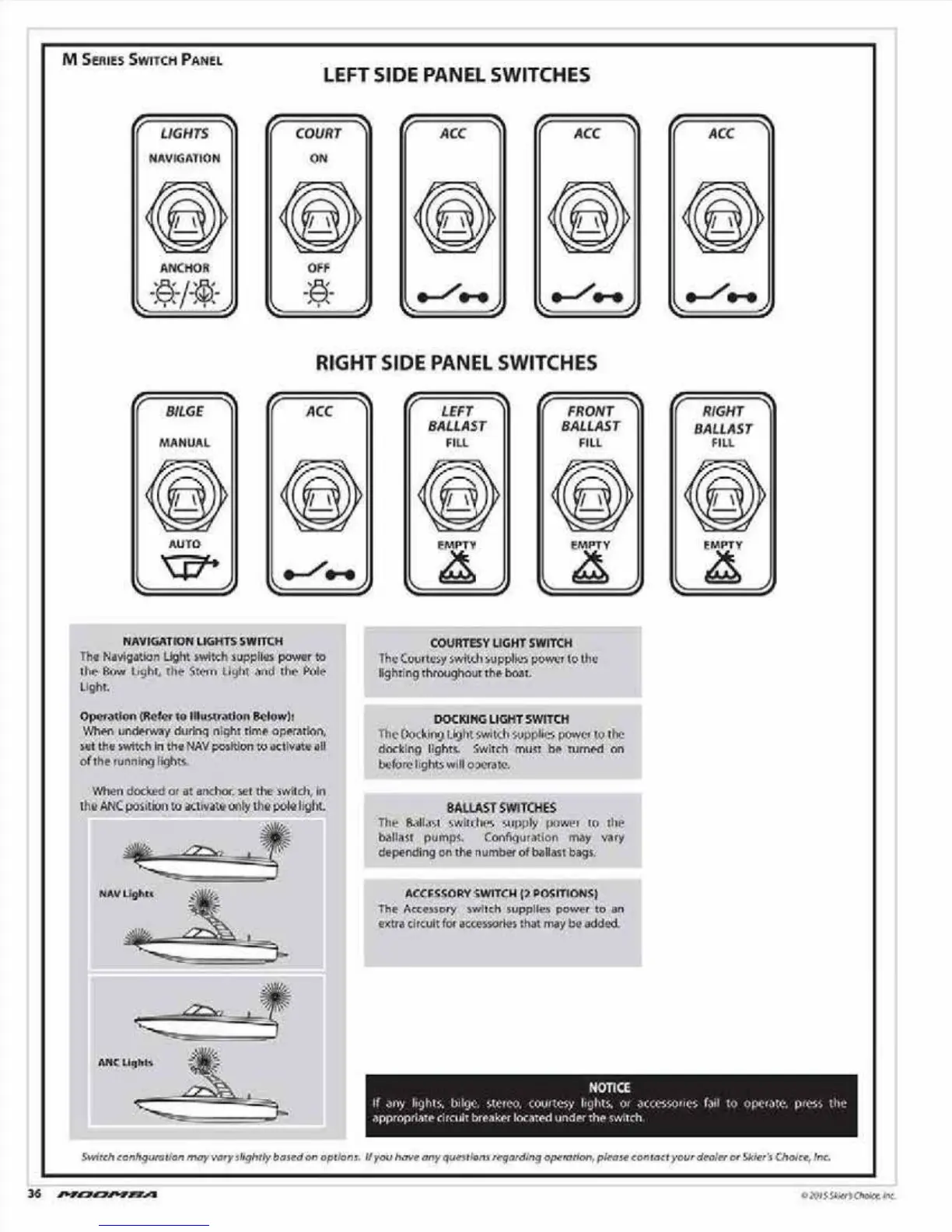 Moomba Outback V - M Series Series Switch Panel Functions; Switch Panel Layout and Operation