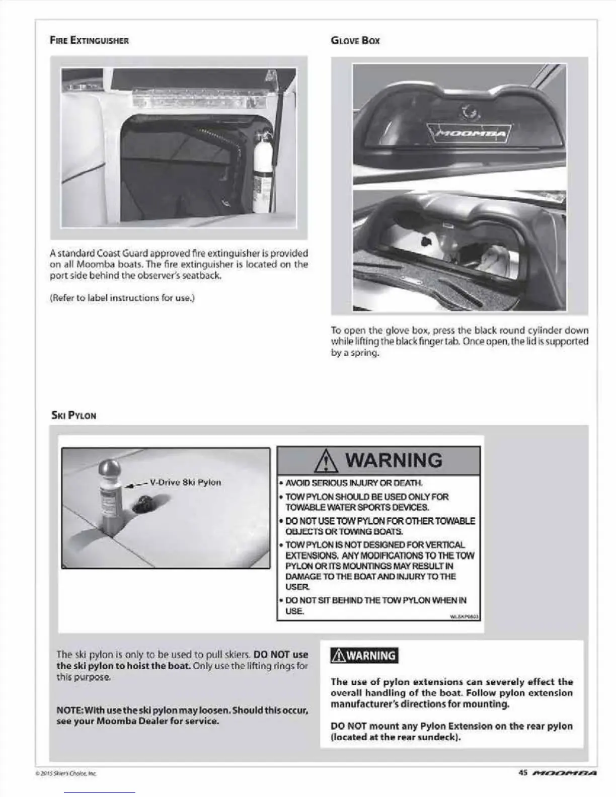 Moomba Outback V - Safety Equipment and Towing Points; Ski Pylon Usage and Warnings
