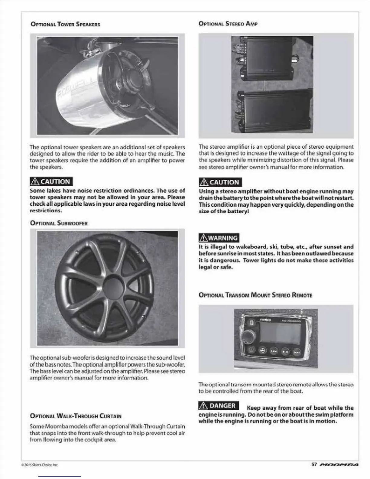Moomba Outback V - Optional Audio and Comfort Features; Tower Speakers, Subwoofer, and Amp