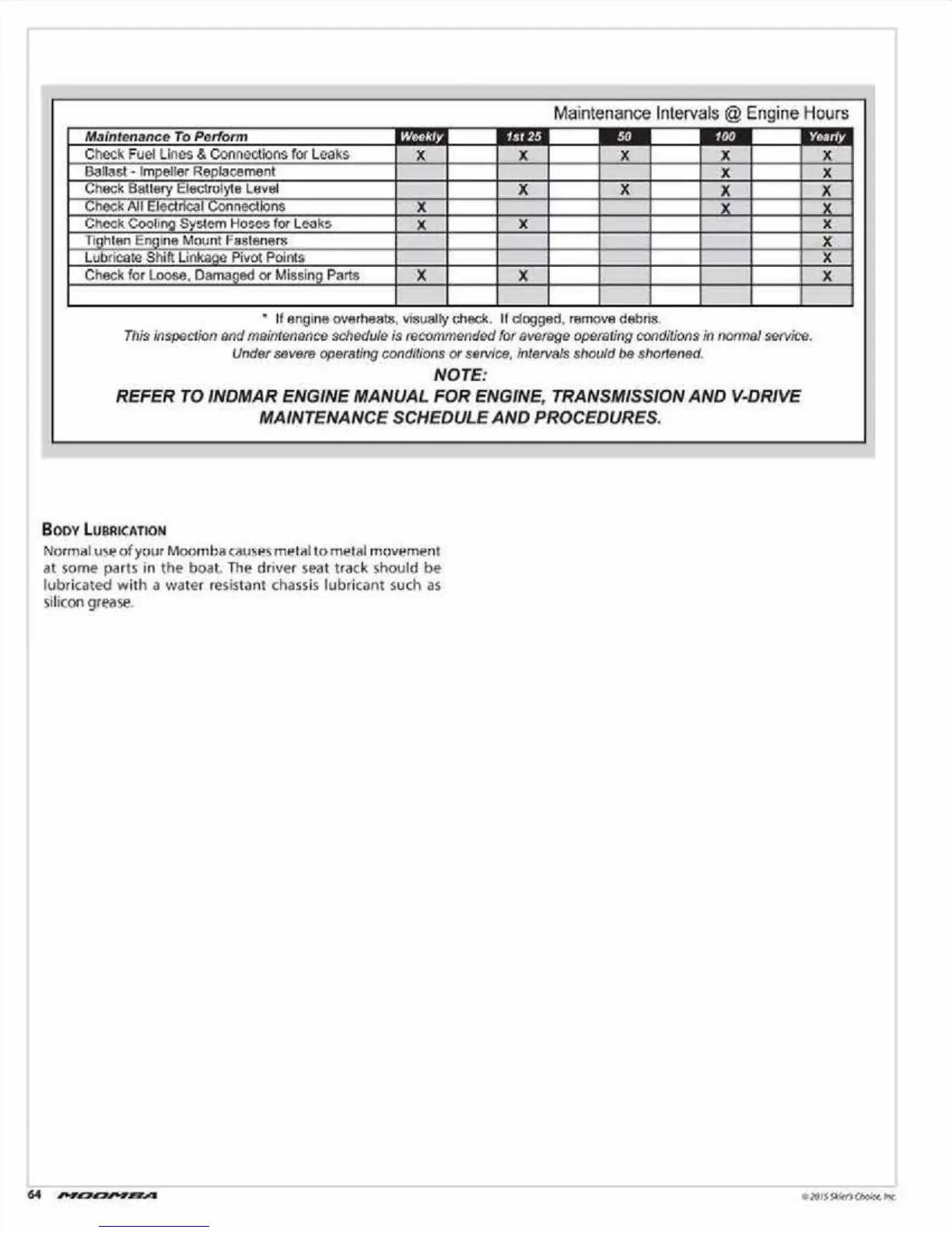 Moomba Outback V - Maintenance Schedule and Lubrication; Maintenance Intervals Based on Engine Hours