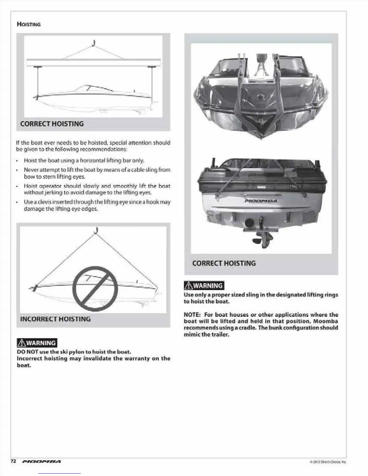 Moomba Outback V - Boat Hoisting Procedures; Correct and Incorrect Hoisting Methods