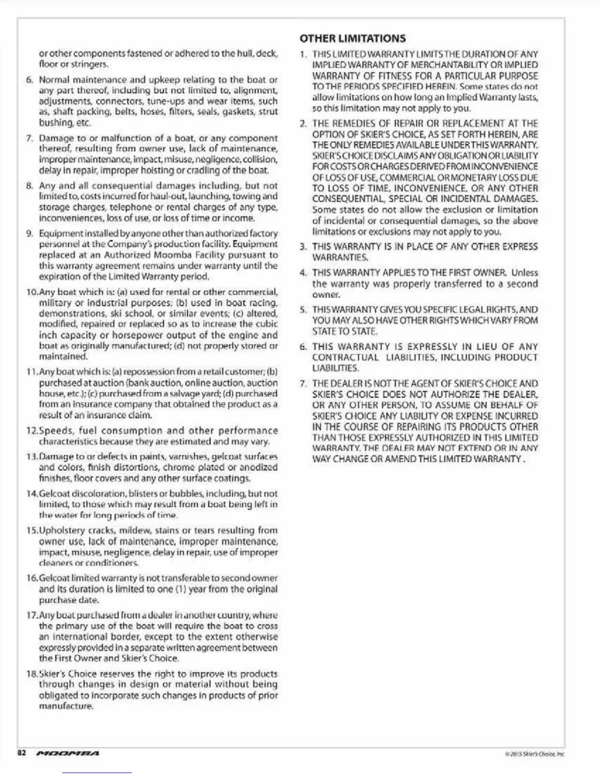Moomba Outback V - Warranty Exclusions and Limitations; Specific Warranty Exclusions