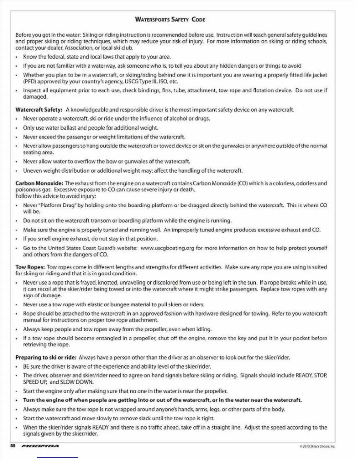 Moomba Outback V - Watersports Safety Guidelines; Watersports Safety Code