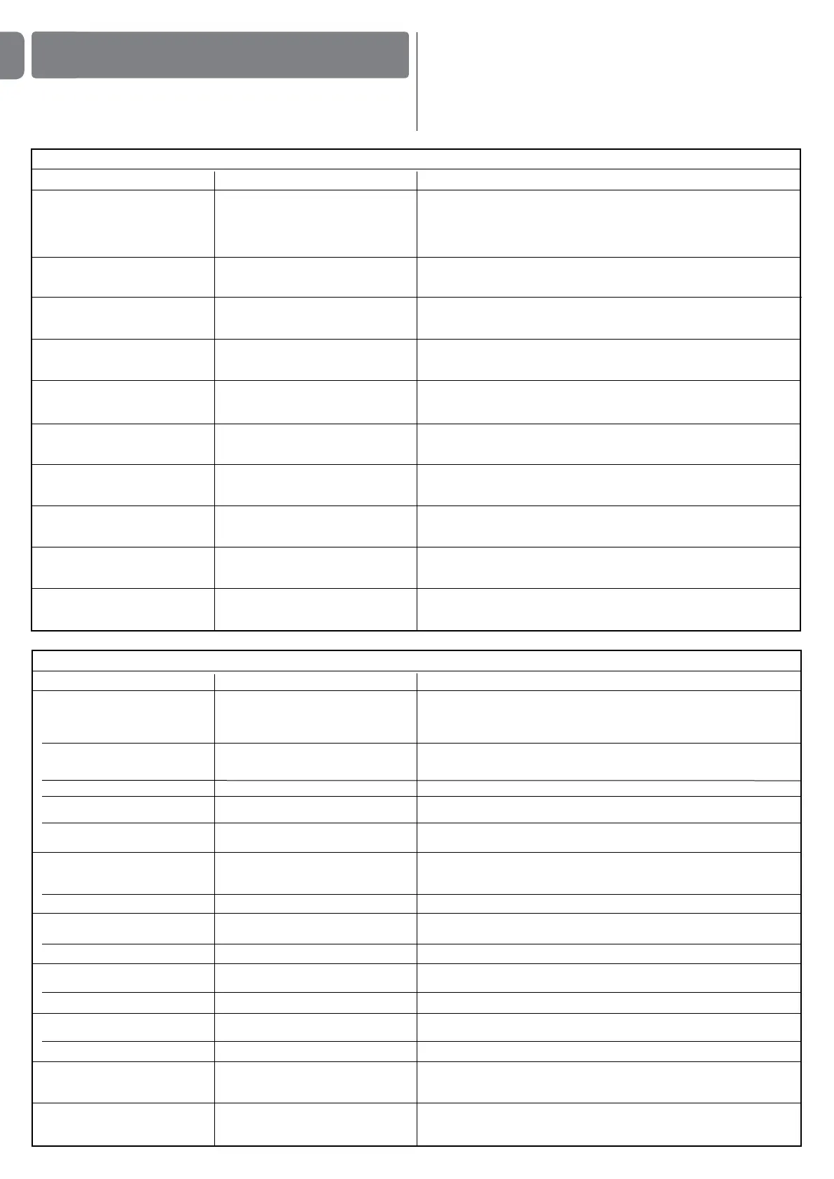 TABLE 11 - Signals given by LEDs on control unit (fig. 7)