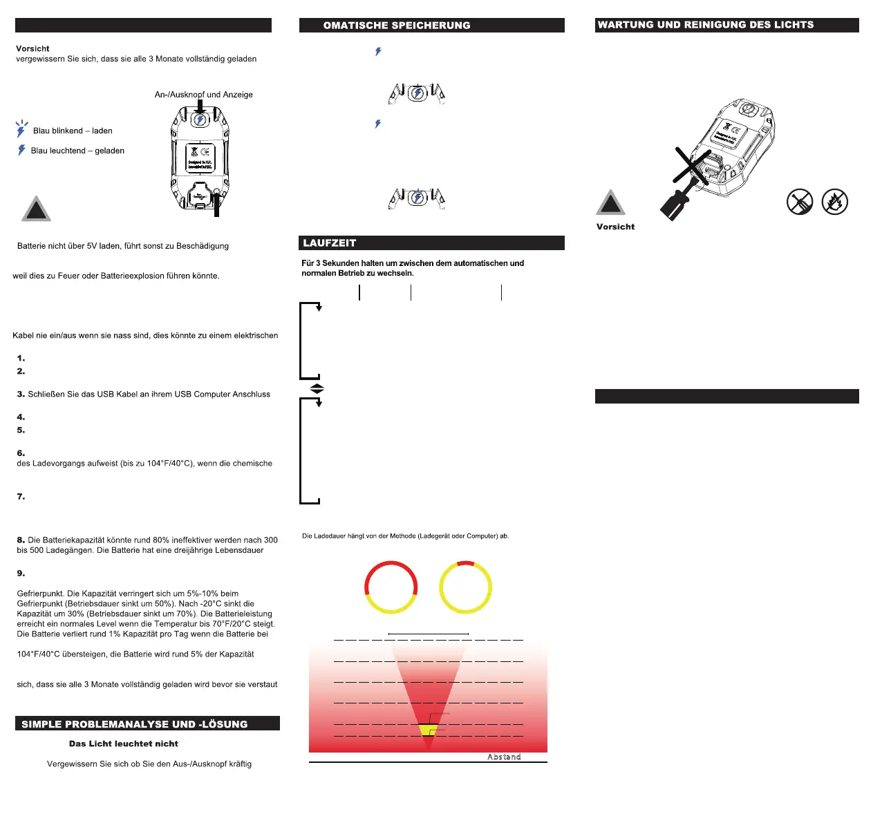Licht geladen wird, nach vollständigem Laden schaltet es sich aus.