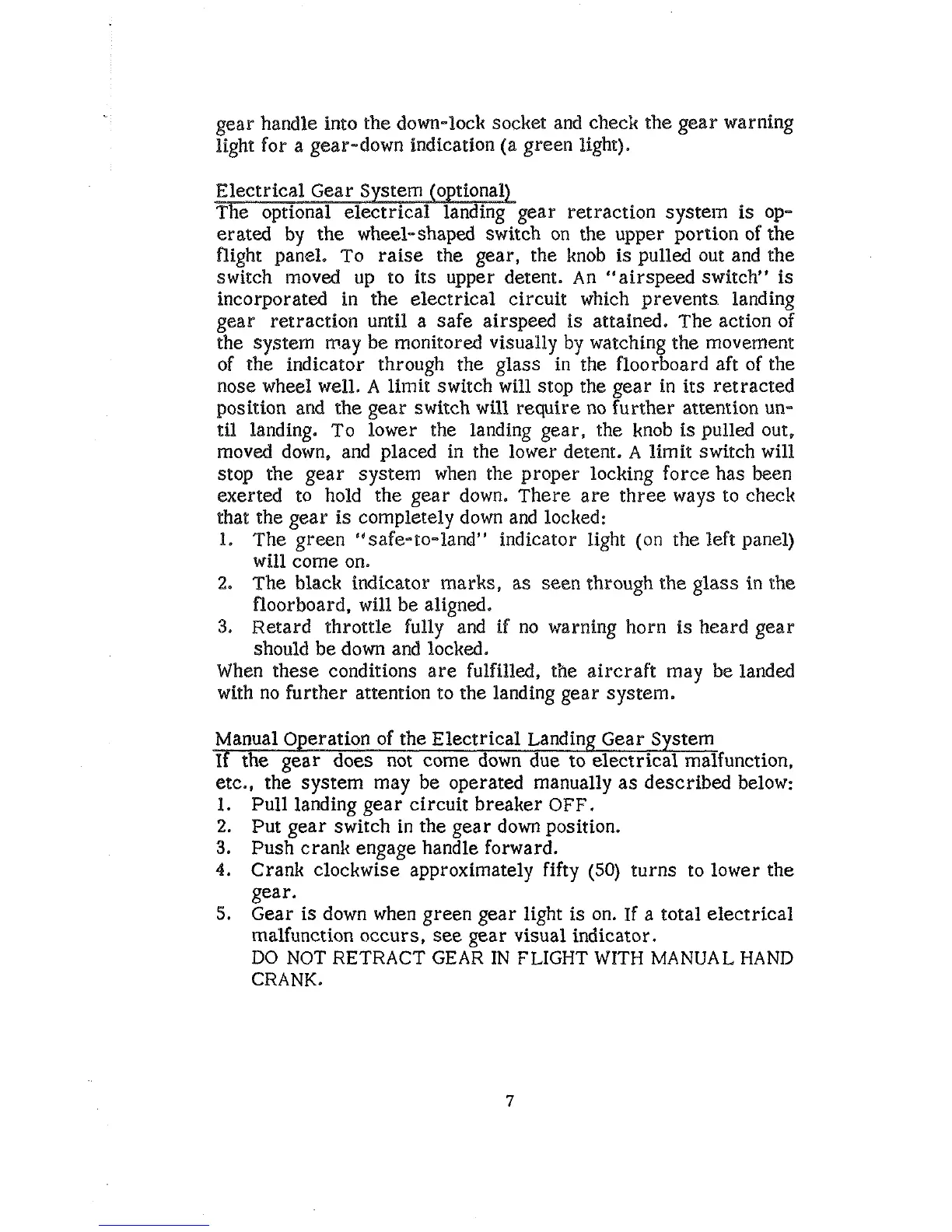 gear handle into the down-lock socket and check the gear warning
