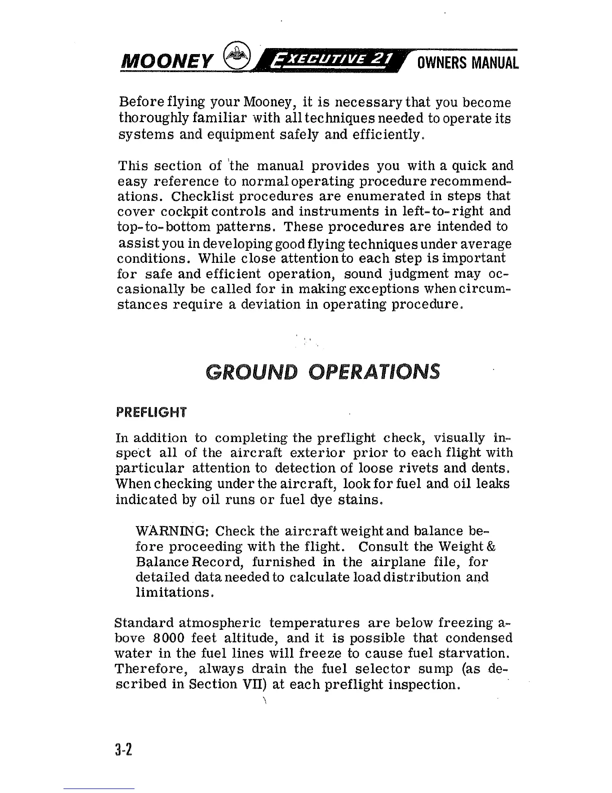 fore proceeding with the flight. Consult the Weight