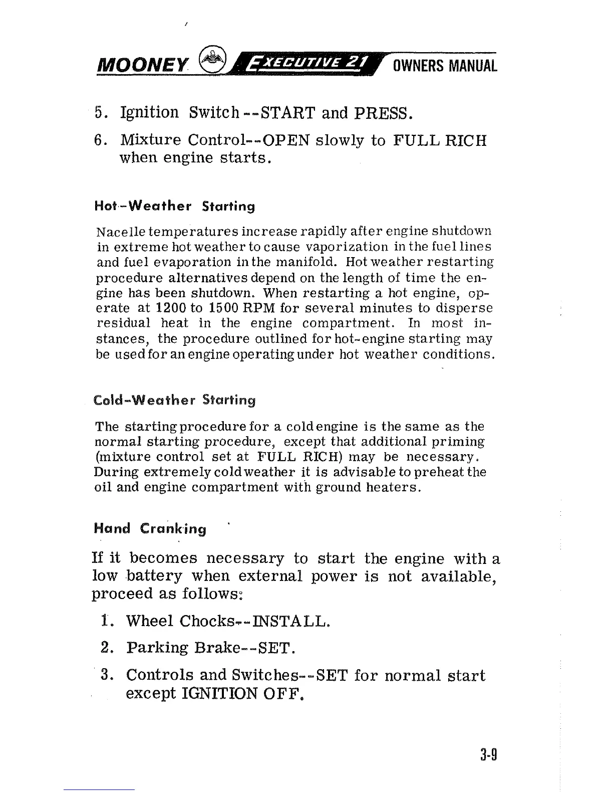 stances, the procedure outlined for hot-engine starting may