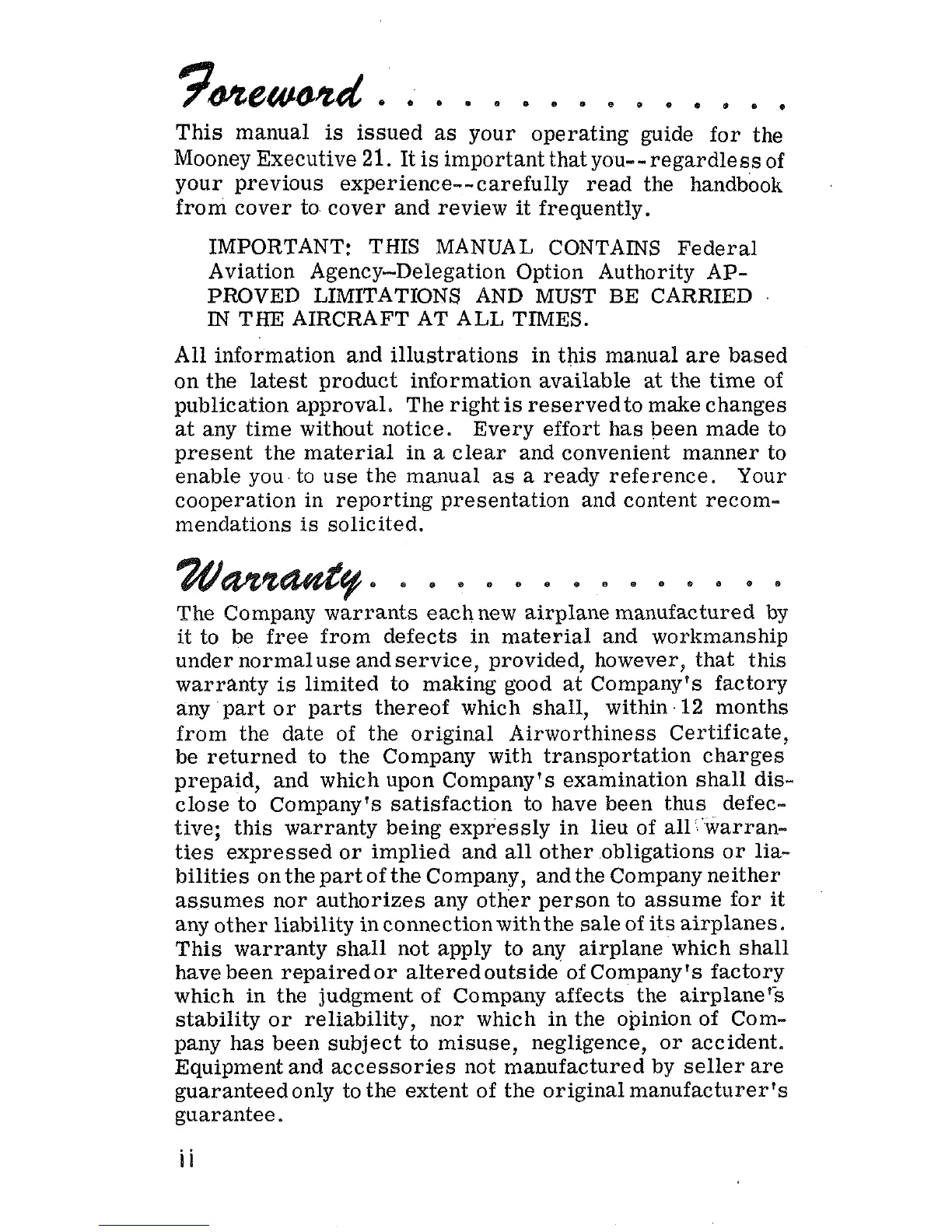 The Company warrants eaehnew airplane manufactured by