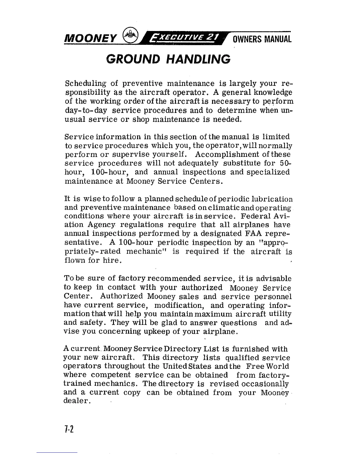to keep in contact with your authorized Mooney Service