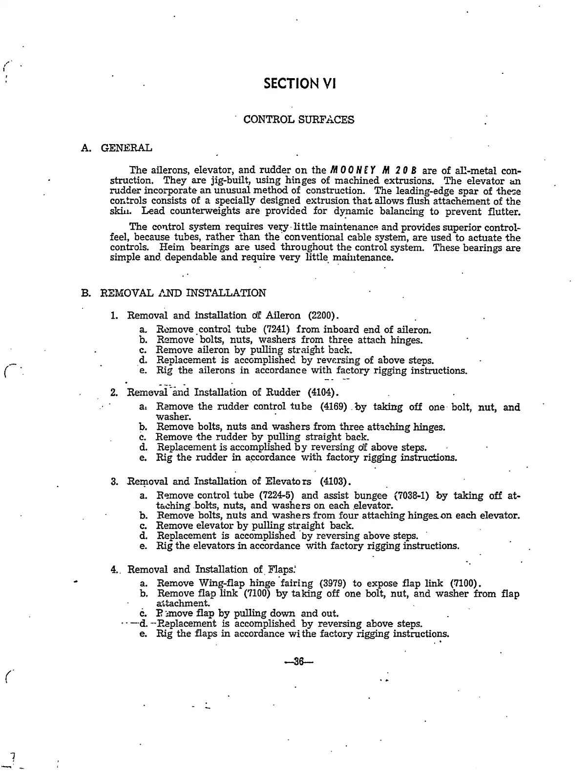 Mooney M20B - General Control Surface Information; Control Surface Removal and Installation